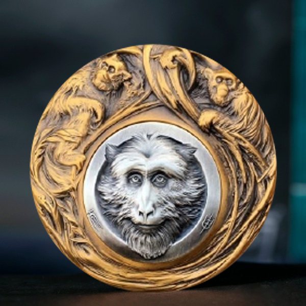 當前位置:首頁 / 熱門定制 / 大銅章定制 / 圓形銅章 / 猴子生肖高浮雕銅章